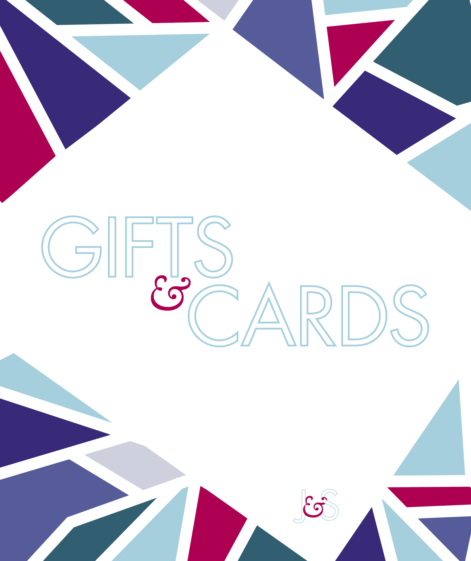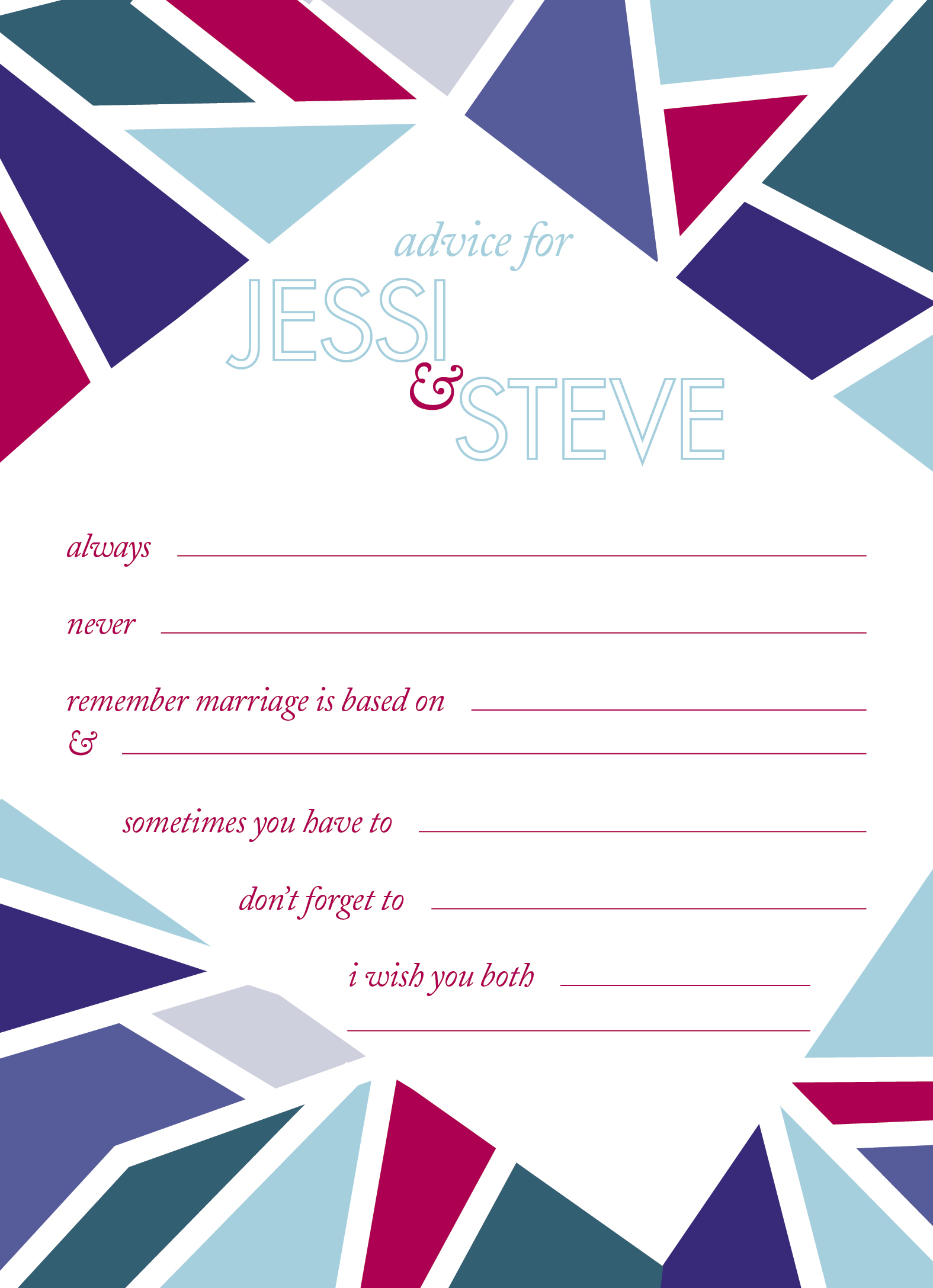 Printed pieces for a wedding that started with a logo for the couple, which was then used in printed pieces throughout the reception. The couple wanted jewel tones with an abstract, geometric feel.